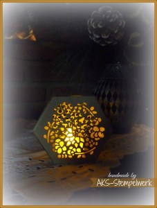 Ein kleines Teelicht rein (natürlich keine echte Flamme 😉 ) und schon habt Ihr in dieser trüben Jahreszeit ein wunderschönes Licht!
