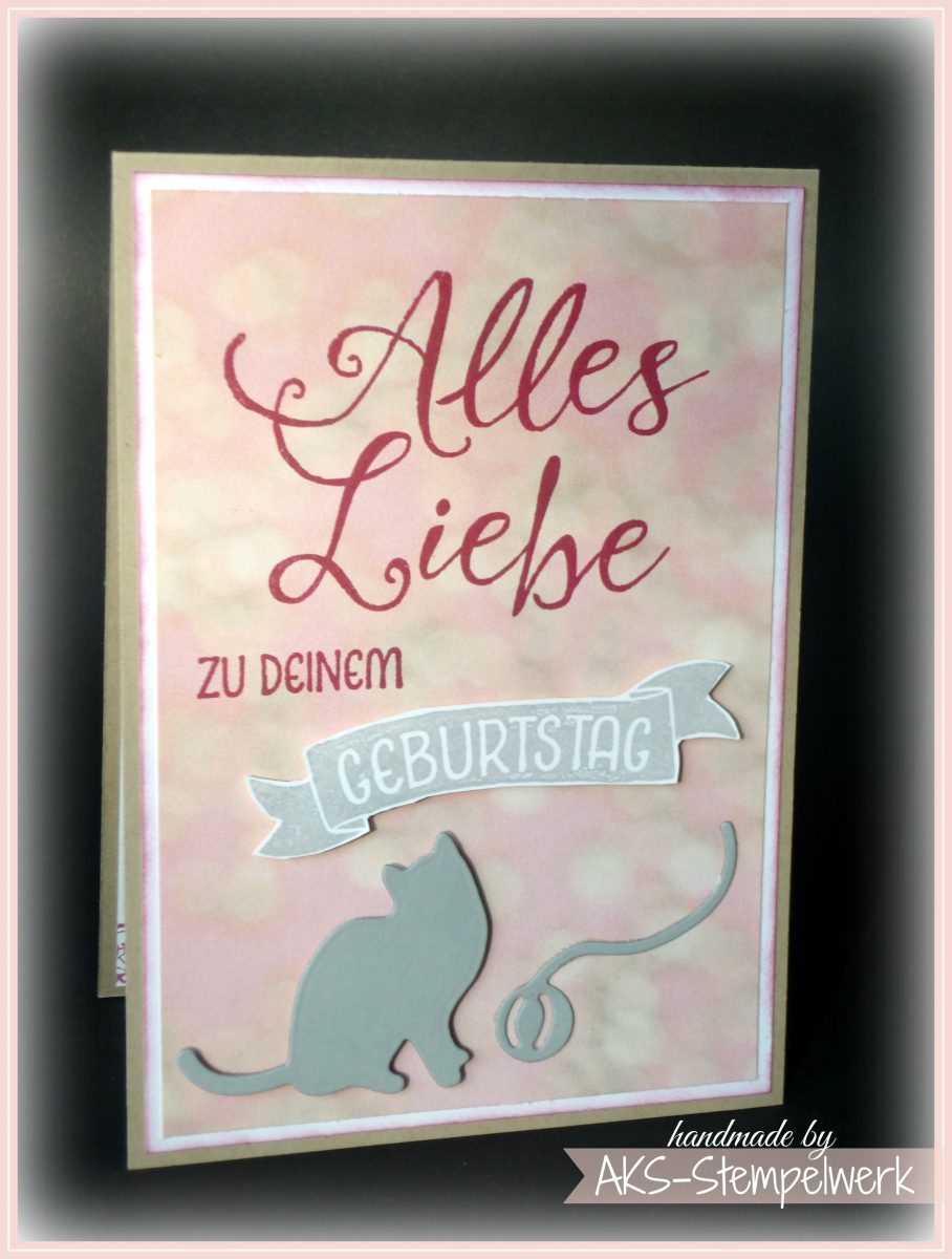 wie gut kennt Ihr eigentlich die Gastgeberinnnensets aus den Stampin‘ Up!-Katalogen? Geht es Euch auch so, dass Ihr die oft überblättert? Oder sogar im Schrank habt, aber sehr wenig benutzt? Ich habe ganz aktuell das Set „Grüße rund ums Jahr“ verwendet und zwar für eine Geburtstagskarte. Außerdem kam das Designerpapier „zum Verlieben“ als Hintergrund zum Einsatz. Es gehört ja aktuell zu meinen Lieblingspapieren. Den kl. Geburtstagsbanner kann man mit den Framelitsformen „Bunter Banner-Mix“ ausstanzen, ich hab’s aber einfach mit ner feinen Schere ausgeschnitten, das geht auch, wenn Ihr das Set nicht zur Hand habt.