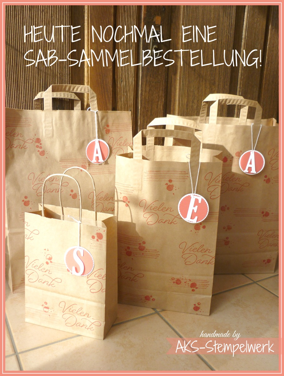Und damit Ihr nicht ganz durcheinander kommt, hier nochmal eine schnelle Erinnerung meinerseits an die SU-Sammelbestellung heute Abend! Wer nochmal in den Genuss diverser SAB-Gratis-Produkte kommen will, schickt mir bitte bis heute Abend 21.00 Uhr seine Bestellwünsche. Zur Vorsicht bitte für die Sale-A-Bration-Gratissets immer Alternativen angeben, falls die Liebelingssets nicht mehr lieferbar sind!!!