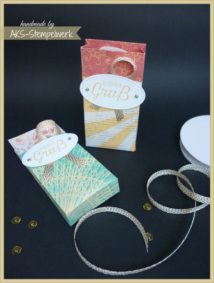 Die Idee zu diesem kl. Täschchen hab ich übrigens vonSam von http://pootles.co.uk/. Der Stempel „Kleiner Gruß“ ist aus dem Set „Blühende Worte“, das es auch gemeinsam mit den Thinlits Formen „Blütenpoesie“ als Sparpaket gibt. Das Band, das ich zum Verzieren verwendet habe, gibt es übrigens nur noch heute im Rahmen der SAB. Der Countdown läuft… und einige Artikel sind bereits ausverkauft. Aber das tolle Glitzerband müsste es noch geben. Über meinen Online-Shop rechts in der Sidebar könnt ihr rund um die Uhr shoppen und die Ware wird dann direkt zu Euch nach Hause geliefert. (Achtung: Ihr braucht eine Kreditkarte!)
