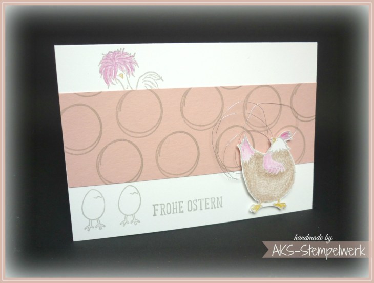 Hier hab ich nämlich noch ein schnelles Kärtchen, bei dem die verrückten Hühner aus dem allseits beliebten SAB-Set „Das Gelbe vom Ei“ nochmal zum Einsatz gekommen sind. Wer hätte zu Anfang gedacht, dass es DAS Lieblingsset der diesjährigen Sale-A-Bration wird? Zumindest kann man das wohl annehmen, wenn man den ganzen Äußerungen der Stempelbegeisterten und Demos Glauben schenken darf.