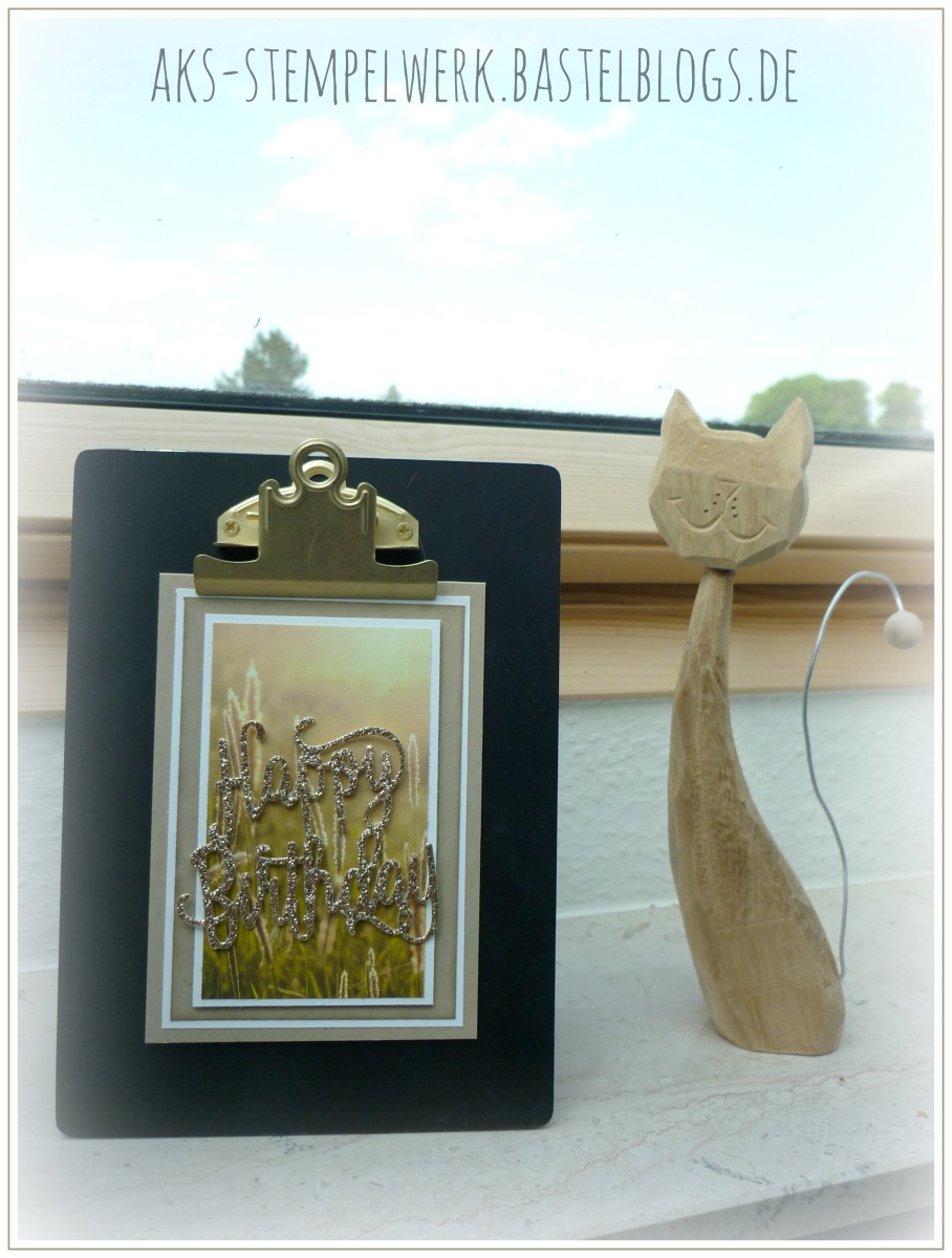 Die tolle Happy Birthday-Stanzform. Die gefällt mir richtig gut. In diesem Fall hab ich sie mal mit dem goldenen Glitzerpapier ausprobiert.