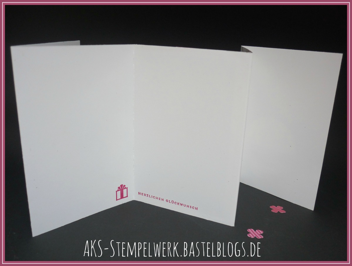 In der Mitte könnt Ihr die durch das Zusammenkleben entstandene Tasche erahnen. Ihr seht, dass dort ein Kärtchen hervorlugt. Das kann z.B. mit persönlichen Zeilen für’s Geburtstagskind beschrieben werden. Ganz rechts habe ich ebenfalls noch ein Täschchen, wo ein Gutschein, ein Foto oder ähnliches Platz findet.