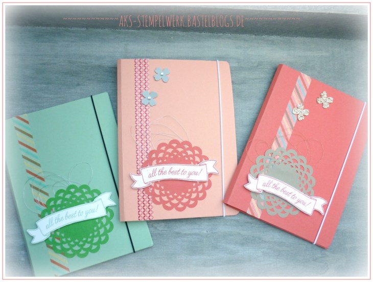 Daher wird es Zeit, dass ich mich auch basteltechnisch endlich auf den Herbst und seine zugegeben auch wunderschönen Farbspiele und -kombinationen einstelle. Deshalb will ich Euch mal schleunigst meine farblich eher sommerlich angehauchten Basteleien zeigen, damit wir uns bald neuen Themen widmen können, nicht wahr?!