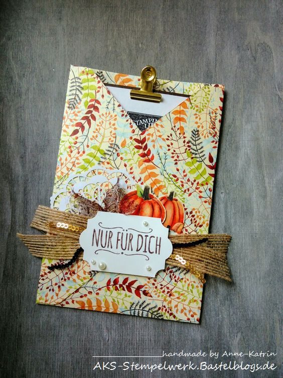 Das Designerpapier Herbstimpressionen hat es mir ja in der letzten Zeit besonders angetan. Daraus habe ich z.B. diesen Gutschein gewerkelt.