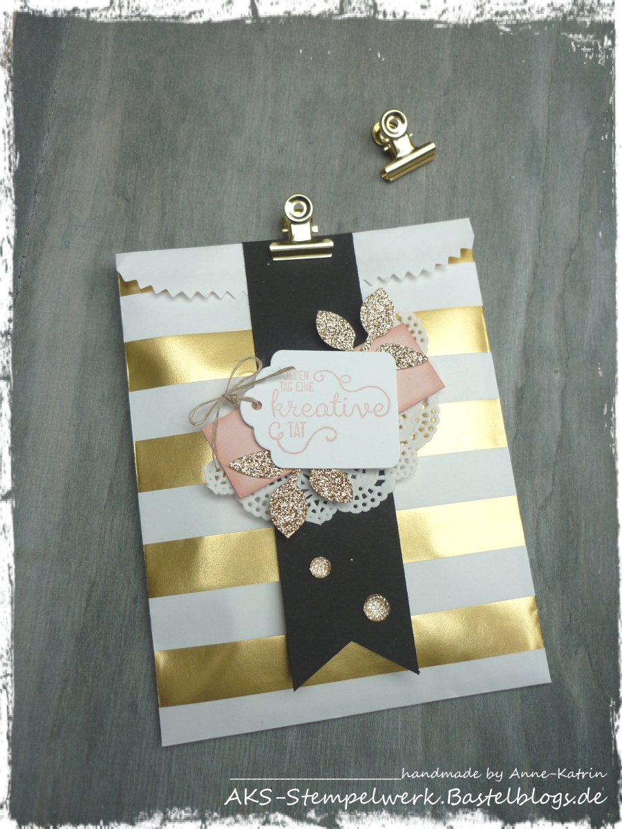Heute gibt es erstmal als kleinen kreativen Einstieg dieses süße Goodie in der Kombi schwarz-weiß-gold-rosé.