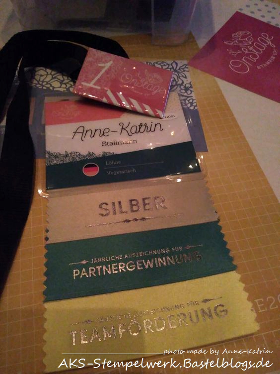 Dementsprechend lang waren auch die Warteschlangen bei der Anmeldung… aber als wir endlich an der Reihe waren, gab es für jeden eine tolle, gefüllte Tasche von Stampin‘ Up und auch ein Namensschild mit Button für die Prizepatrols dazu. (yep, es wird auch was verlost! 😉 )