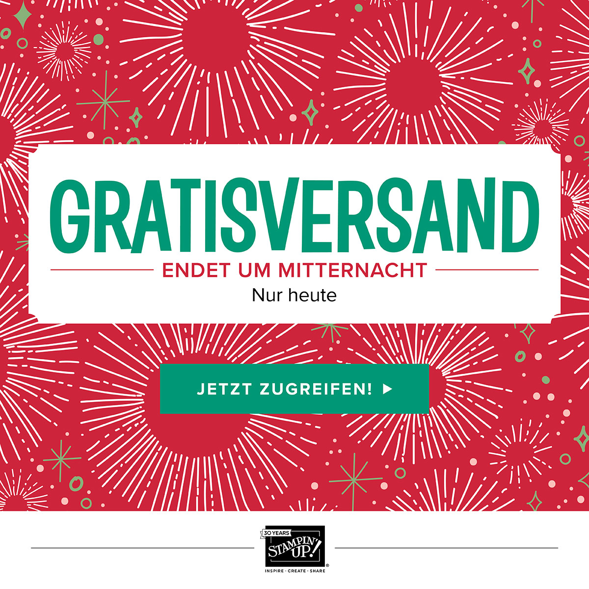 24 Stunden lang könnt Ihr – egal wieviel – versandkostenfrei bestellen. Ist das nicht super? Vielleicht geht es Euch wie mir und Ihr habt bei einer Bestellung schnell mal den Kleber vergessen oder Euch ist das Bastelpapier einer bestimmten Farbe ausgegangen? Vielleicht wollt Ihr nur eine Kleinigkeit aus der Ausverkaufsecke oder dem Jahres-Ausverkauf mit seinen tollen Rabatten, denkt aber dass es sich nicht lohnt, bei 5,95 € Portogebühren? JETZT SCHON… denn die werden Euch heute geschenkt!!!