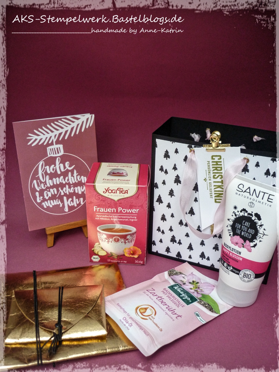 So kann sich meine Wichtelpartnerin einen richtigen Verwöhntag gönnen: Erst ein entspanntes Bad nehmen, dann den Körper mit der Bodylotion verwöhnen und anschließend einen schönen Tee trinken. Klingt das nicht herrlich?!?