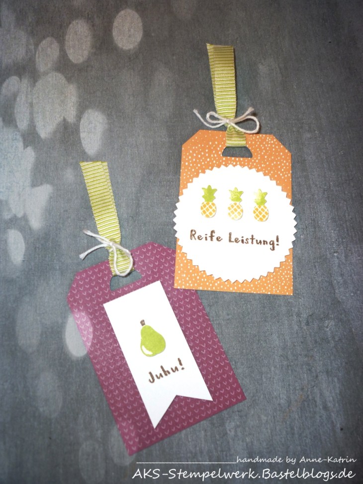 Die Anhänger sind übrigens aus dem zugehörigen Designerpapier „Tuttifrutti“ in 6 x 6 „.