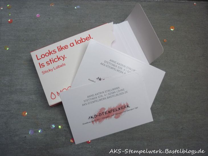 Und zuguterletzt hab ich mir dieses mal auch Adressaufkleber gegönnt. Bisher hab ich sowas immer selber geschrieben und dann bestempelt. Hat auch seinen Reiz, aber zieht auch ganz schön Zeit. Daher mal das Komplettpaket.