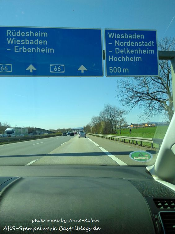 Angereist bin ich mit zwei lieben Demo-Kolleginnen (Melli und Dörthe) aus meiner Nähe und wir hatten eine lustige und kurzweilige Fahrt. Schnell wurde mal fotografisch festgehalten, als dann Wiesbaden ausgeschildert wurde 😉