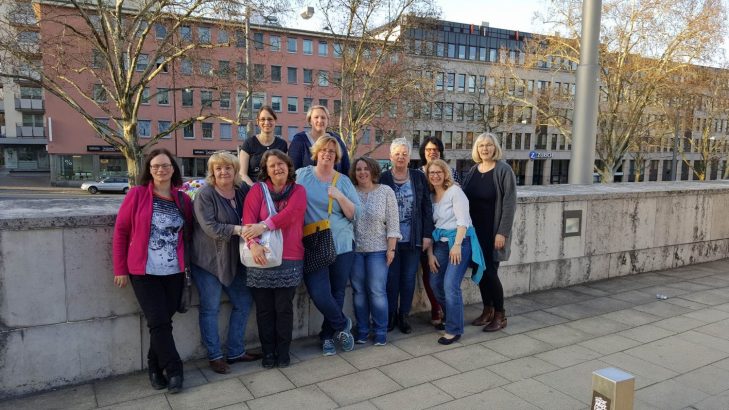 Zum Glück mussten wir im Anschluss nicht direkt zum Zug oder Auto hechten, sondern konnten uns noch einen gemütlichen und feucht-fröhlichen Abend gönnen. Tina hat mal wieder hervorragend geplant. Hier gab’s noch ein Abschluss-Gruppenbild vor’m Hotel. Hach, es hat wieder mal sehr viel Spaß gemacht! Ich danke Euch von Herzen für die wunderschöne Zeit, Mädels!