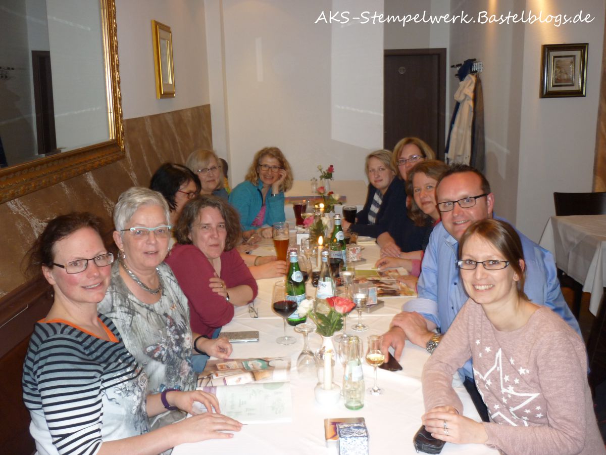 Abends trafen wir uns dann beim Italiener in großer Runde; es wurde gegessen, getrunken, gequasselt und immer lauter gelacht. Sehnsüchtig wurden die Centre-Stage-Teilnehmer erwartet, zugegeben auch, weil sie bereits den neuen Jahreskatalog im Gepäck hatten, der natürlich sogleich vom Rest der Truppe in Beschlag genommen wurde 😉