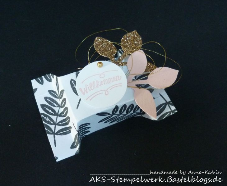 Eine weitere Karte, die ich als Beispiel und zum Nacharbeiten vorbereitet hatte ist diese im Leporello-Style. Sind die Blätter nicht genial? Sie sind auf Vellum gestempelt bzw. Cardstock geprägt und dann ausgestanzt und stammen aus dem Set „Kraft der Natur“ (Hauptkatalog S. 143) Jaaa, auch ich bin länger um dieses Set herumgeschlichen, aber es ist wirklich eine Anschaffung für’s Leben!!!