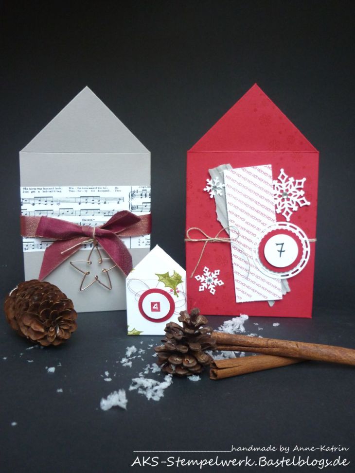 Durch die verschiedenen Größen kommt ein bißchen Abwechslung in die Bude und die Häuschen eignen sich doch prima als Adventskalender, oder?! Je nach Inhalt darf es mal eine kleinere, mal eine größere Variante sein…