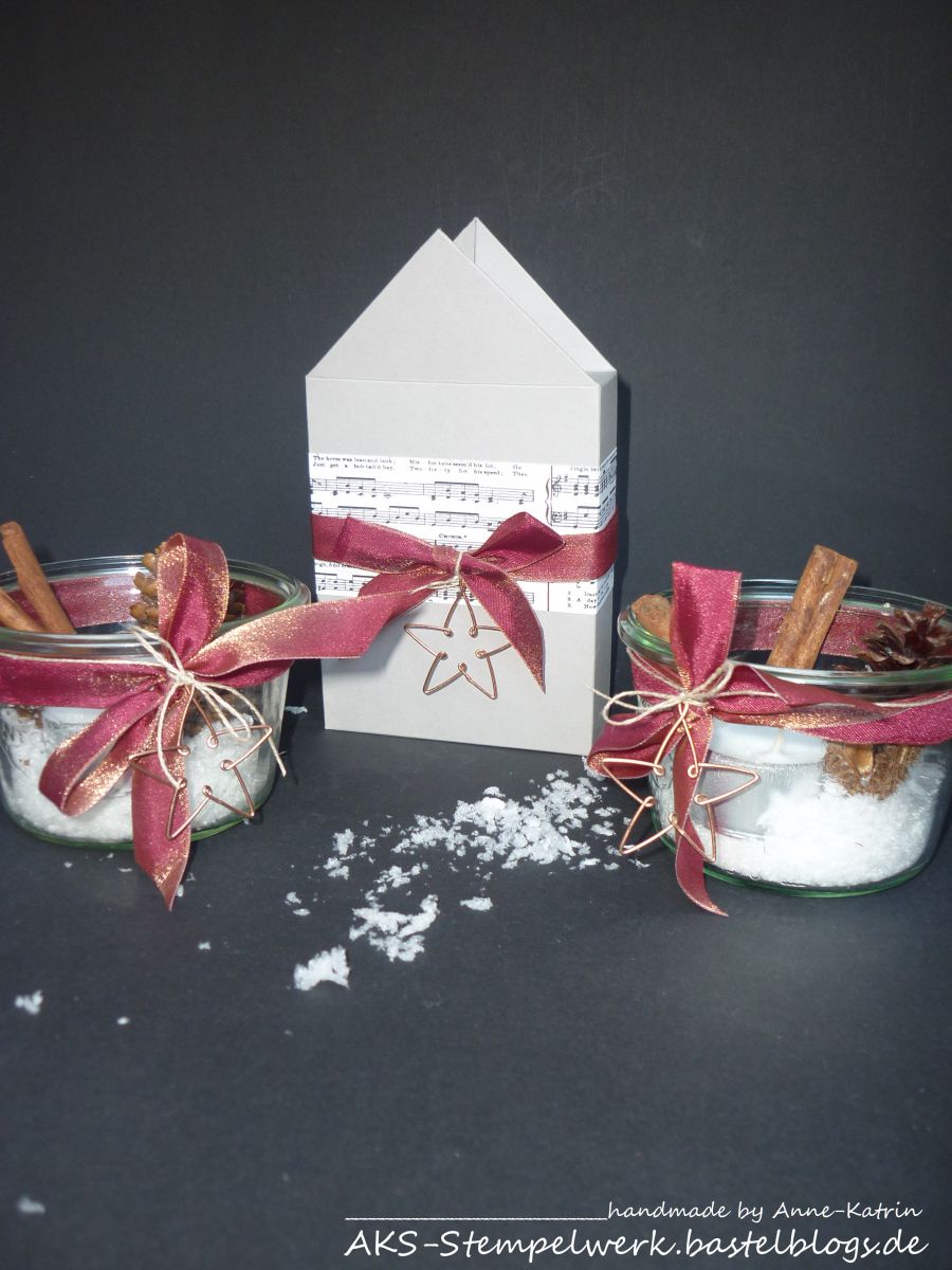 Und dieses Exemplar aus Schiefergrau mit dem schönen Wendeband in Merlotrot und Kupfer und dem Sternchen aus den Drahtakzenten passt ja wohl genial zu meiner Adventsdeko von unserem letzten Designteam-Blog-Hop, oder?!? Hach, wie herrlich – ich bin entzückt!!!