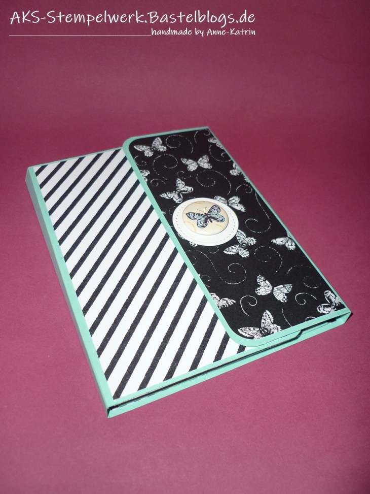 Das Designerpapier „Schmetterlingsvielfalt“ ist aus der aktuellen Sale-A-Bration! Ich finde es wirklich klasse, besonders die schwarz-weißen Rückseiten sind super beliebt und werden gerne verarbeitet.