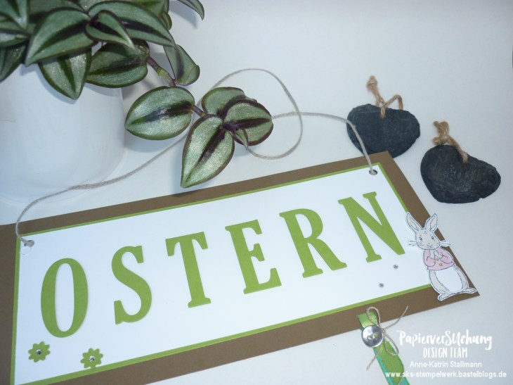 Als Band zum Aufhängen hatte ich bei dieser ersten Version noch das geflochtene Leinenband (Du findest es auf der letzten Seite vom Frühjahr-Sommerkatalog) verwendet. Doch das Wendeband in jade/apfelgrün gefällt mir besser.