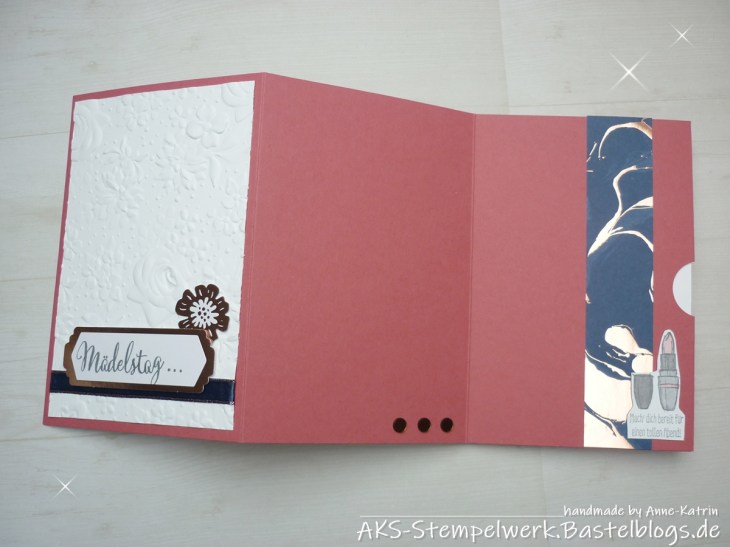Das hat es mir echt angetan mit seiner Farbzusammenstellung, dem Designerpapier, den Kupferakzenten, den tollen Bändern usw… Einfach traumhaft!!!