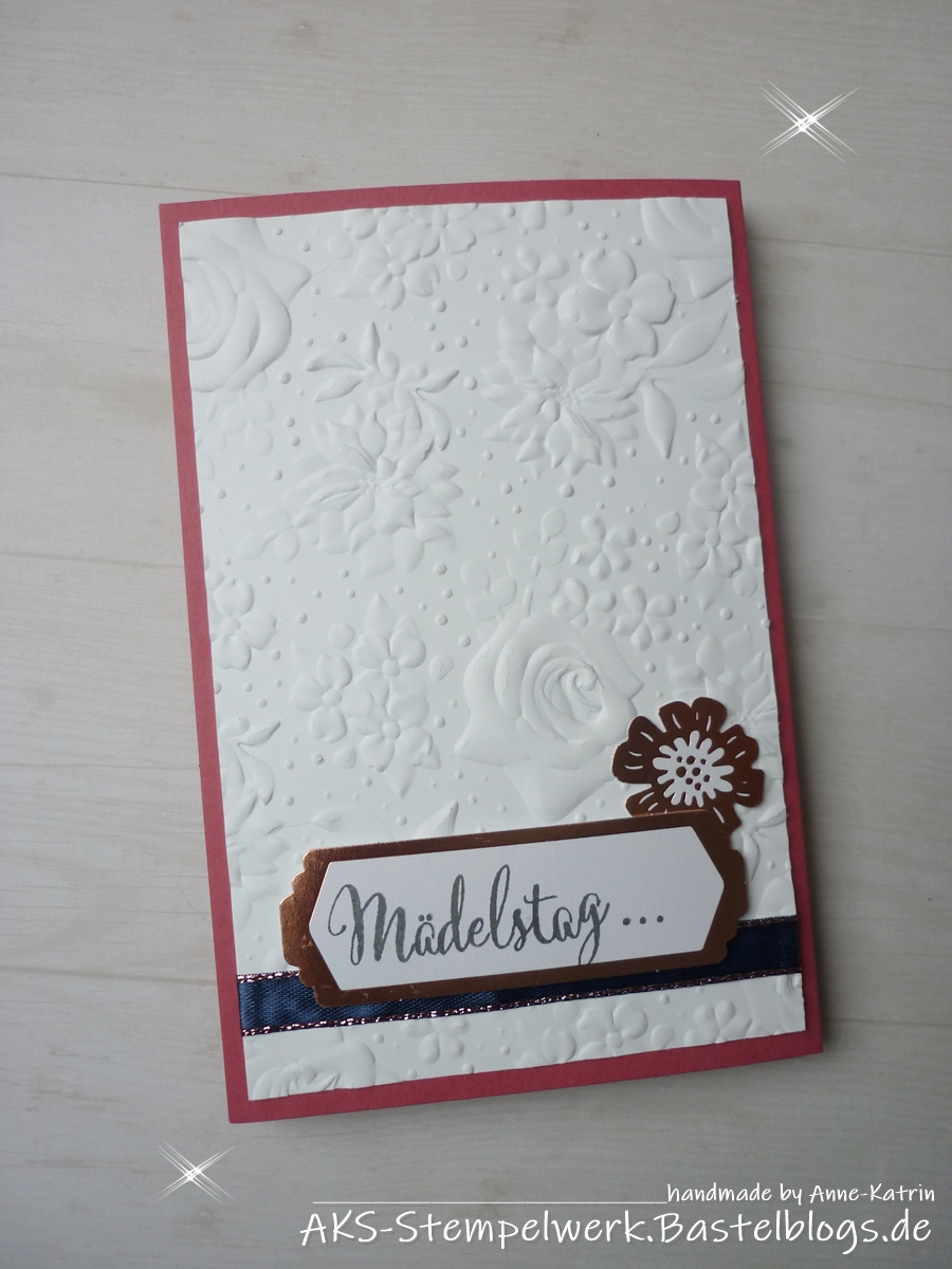 Für das Cover habe ich außerdem den neuen 3d-Prägefolder „Feldblumen“, den es im neuen Katalog geben wird, verwendet. Der ist soooo schön! Vielleicht kennst Du ihn schon aus der letzten Sale A Bration? Es ist einer der wenigen Ausnahme-Artikel, die in den Jahreskatalog übernommen werden. Und zwar mit Recht!!! 😉