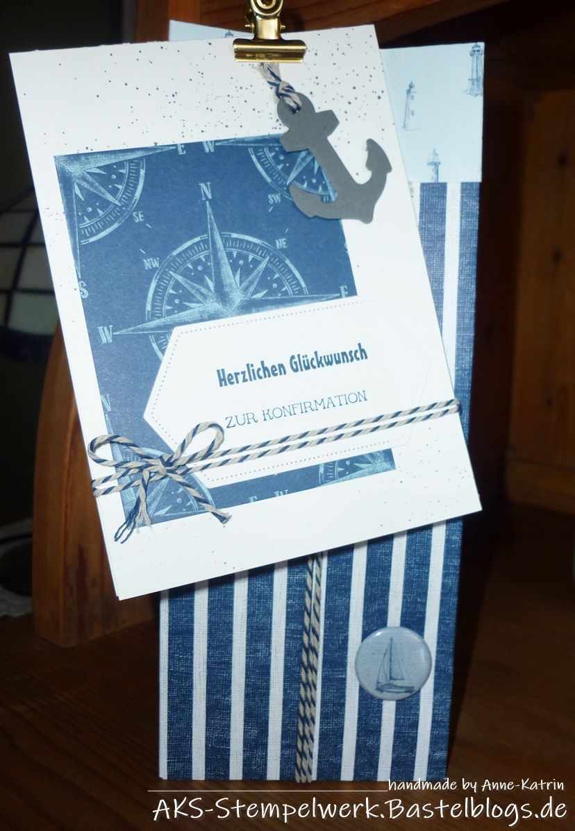Zur Zeit sind ja wieder überall Konfirmationen und aus diesem Anlass habe auch ich letzte Woche eine kleine Geschenktüte und Karte gewerkelt – für einen Jungen!