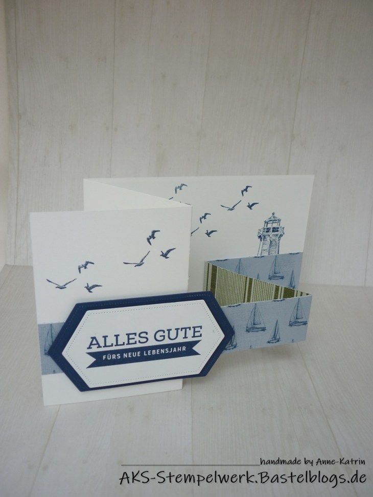 Heute gibt es auf die Schnelle diese maritime Geburtstagskarte in der Double-Z-Fold-Card-Technik!