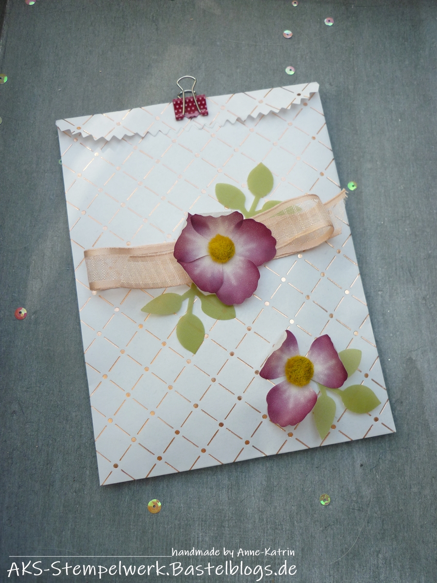 Vor kurzem habe ich diese kleine Geschenktüte (Hauptkatalog S. 173) befüllt und vorallem verziert.