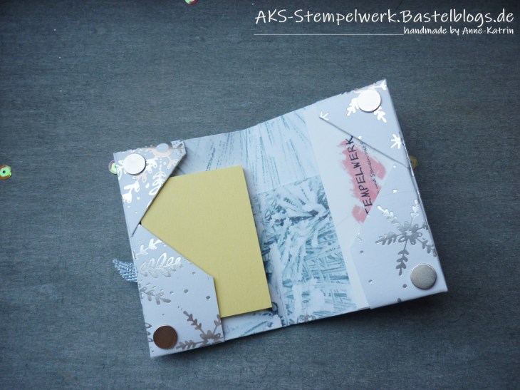 Damit das Büchlein nicht immer von alleine aufklappt, habe ich mit den kleinen Scheibenmagneten gearbeitet. Die gibt es leider nicht bei Stampin‘ Up! aber immer mal wieder in einer Sammelbestellung in diversen Bastelgruppen im Netz…