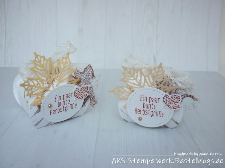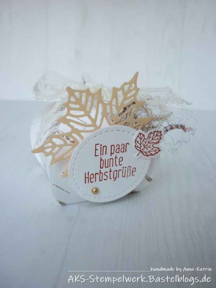 Nach meiner letzten Herbstkarte folgen heute ein paar bunte Herbstgrüße in Form kleiner Goodies, die ich mit der neuen Mini-Zierschachtel (Herbst-Winterkatalog, S. 21,übrigens auch als Produktpaket 10% günstiger erhältlich) erstellt habe.