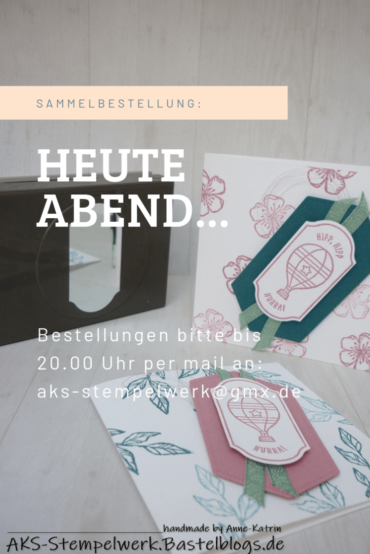 Heute Abend findet noch eine Sammelbestellung statt! Wer sich daran beteiligen mag, kann mir einfach seine Bestellung per mail schicken an: