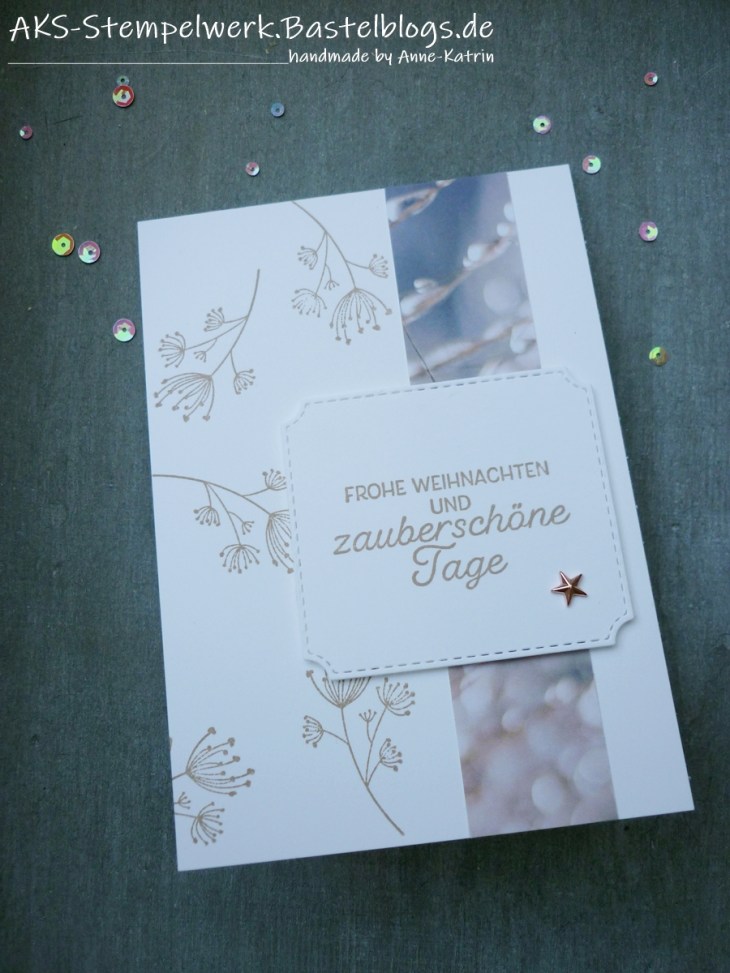 Hier habe ich eine Weihnachtskarte mit der Produktreihe „Winterzauber“ erstellt.