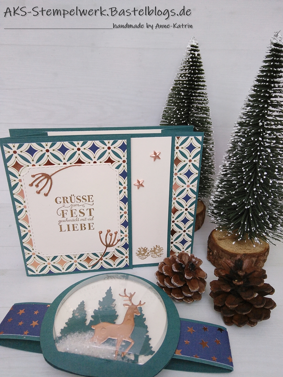 Der Grußstempel ist aus dem Stempelset „Festtagsglanz“ (Herbst-Winterkatalog S. 32)