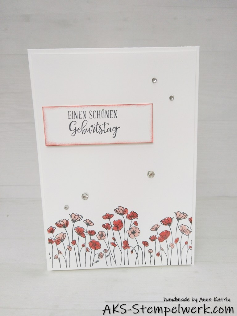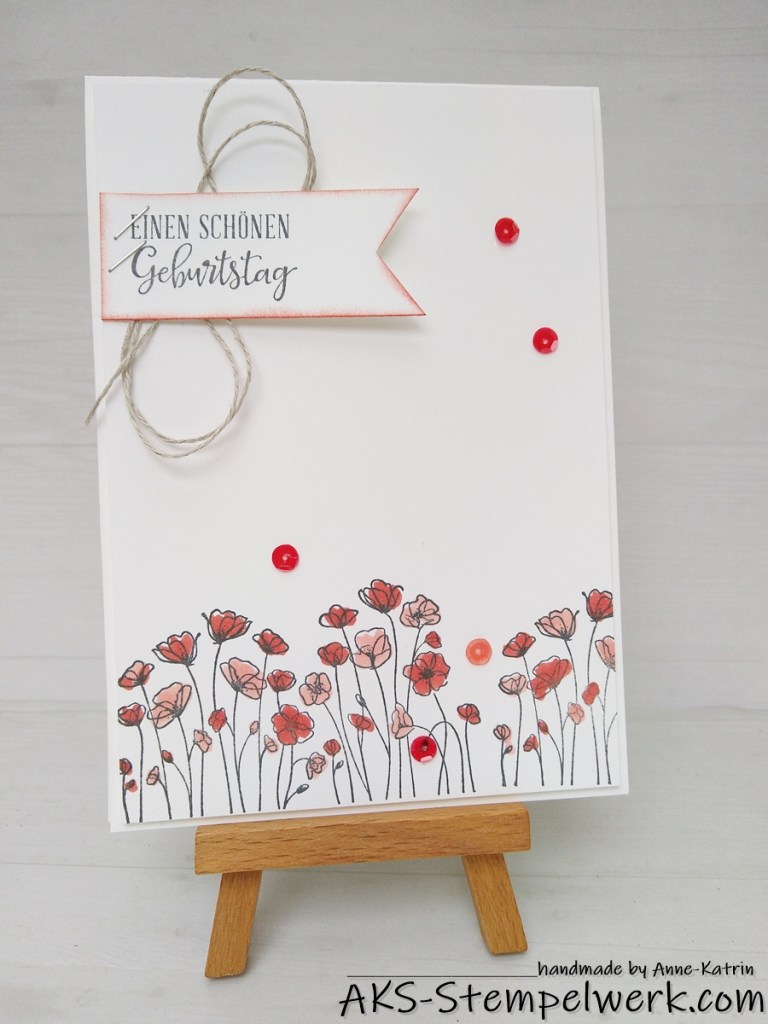 Statt der Glitzersteine sind die roten Pailletten aus dem Set „Mohnblütenzauber“ (Frühjahr-Sommerkatalog S. 25) zum Einsatz gekommen.