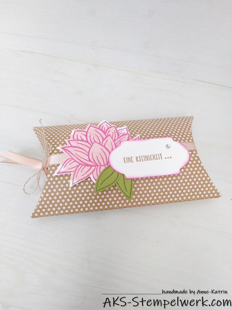 Zum Verzieren habe ich mich für das SAB-Set Lovely Lily Pad entschieden (SAB-Broschüre S. 5) und die passenden „Stanzformen Seerose“, die es ebenfalls in der SAB-Broschüre gibt.