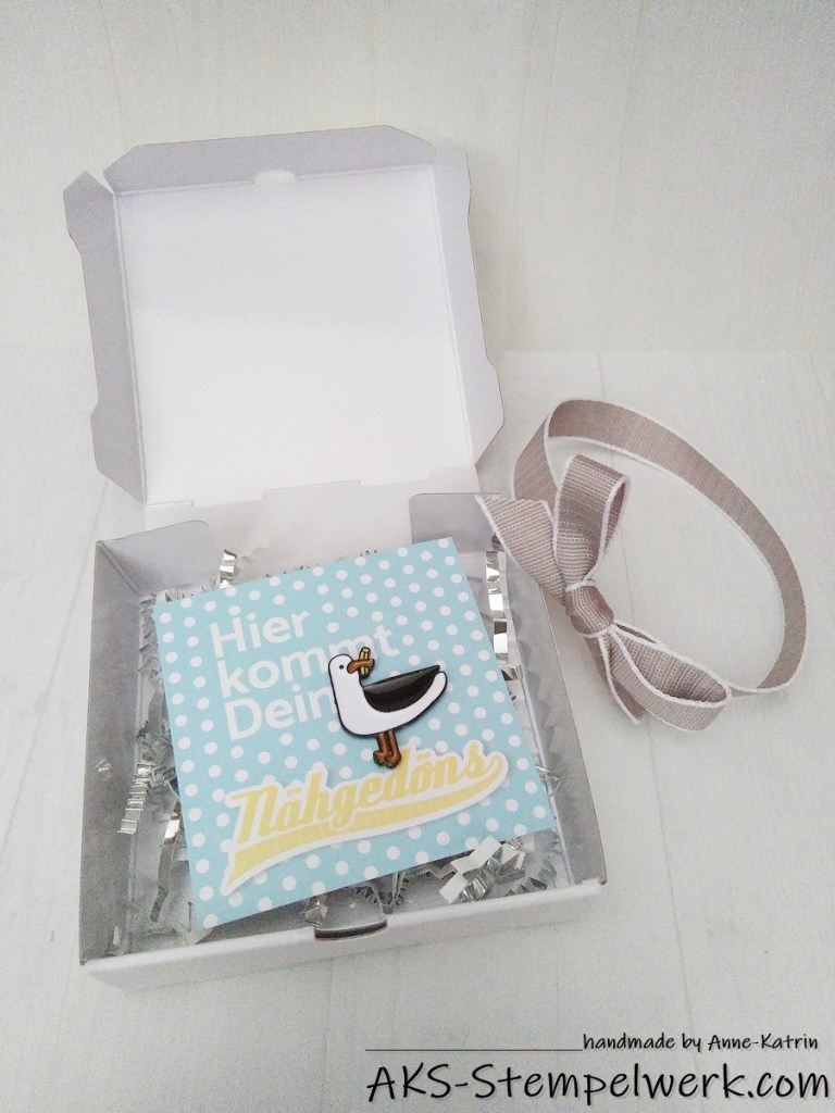 Als ich bei Nähgedöns.de dann diese niedliche „Möwe mit Pommes“ als Anstecker fand, ist er quasi automatisch in meinen Warenkorb gewandert. Nun musste er nur noch hübsch verpackt werden.