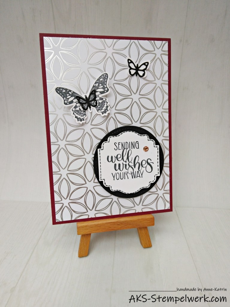 Dafür habe ich statt des Designerpapiers Mohnblütenzauber das neue Designerpapier Blütenglanz aus der SAB verwendet.