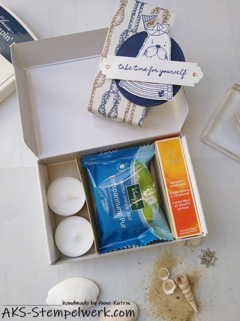 Gefüllt habe ich die kleine Schachtel mit ein paar tollen Wohlfühl-Produkten, passend zum Spruch auf dem Deckel 😉