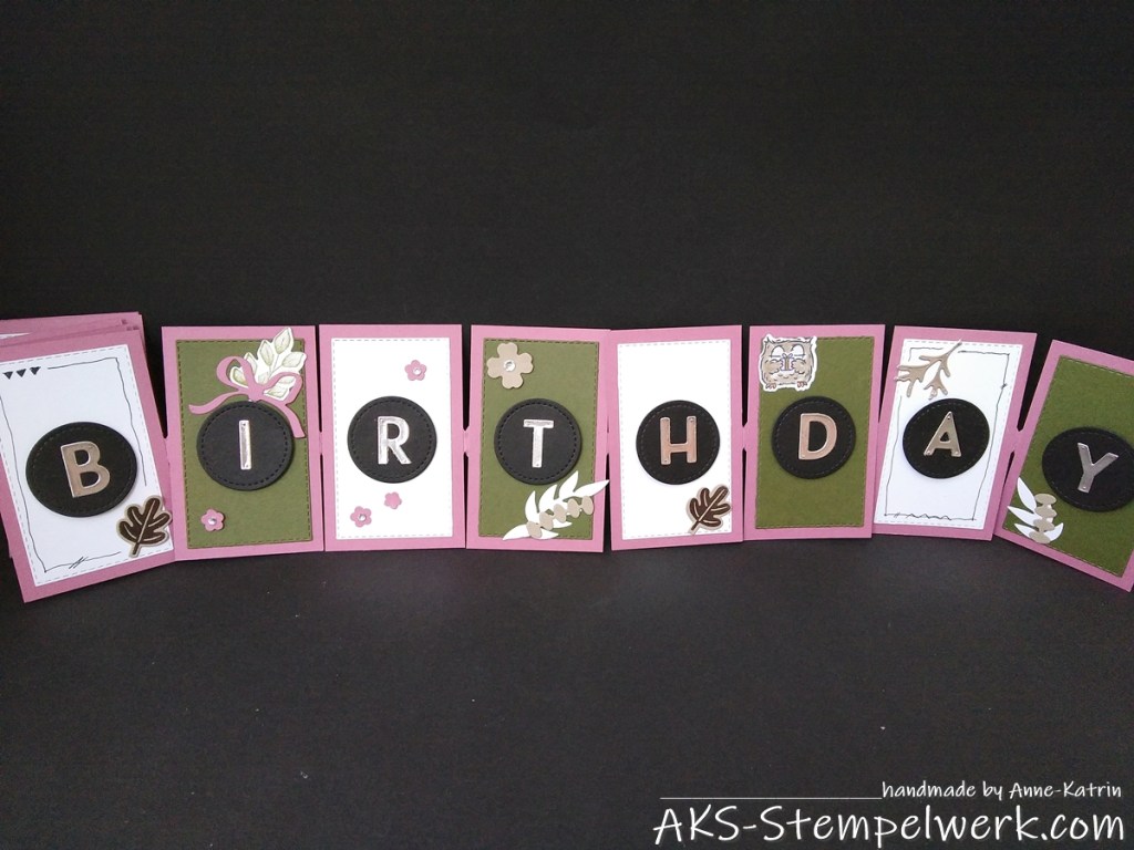 Ich habe zu diesem Anlass eine Art Wimpelketten-Karte gemacht, die man wie eine Zieharmonika aufziehen kann.