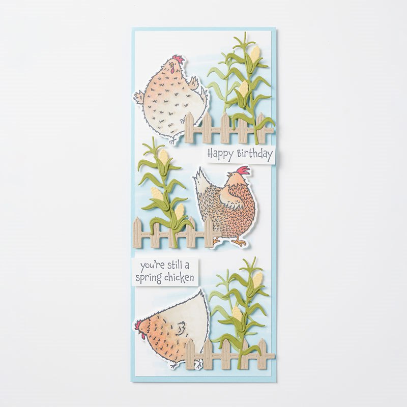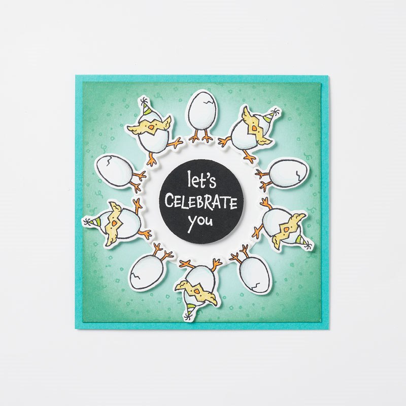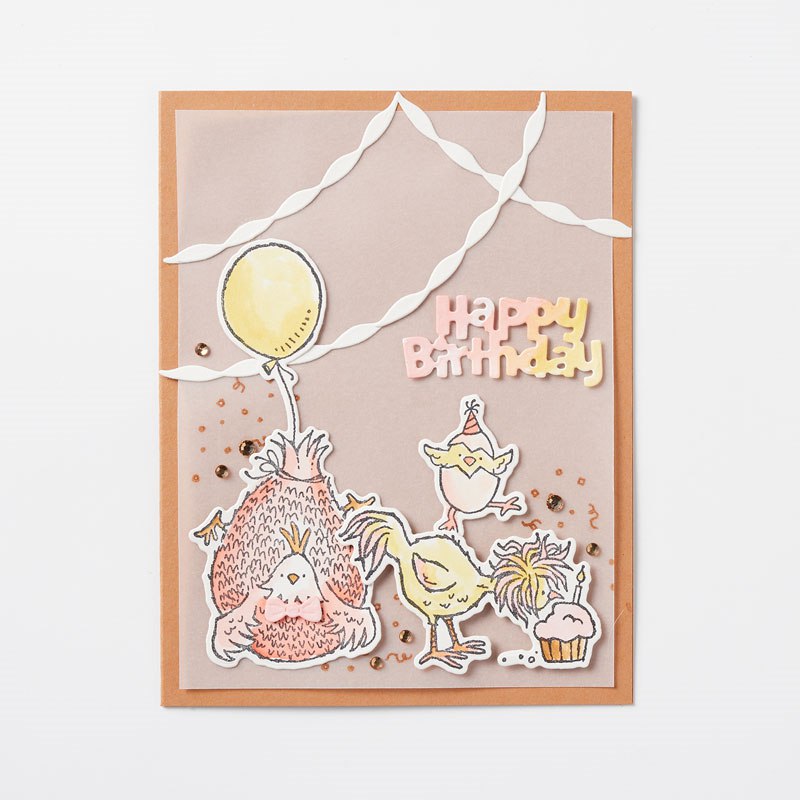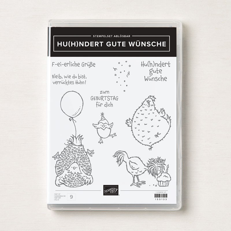 Außerdem gibt es im Minikatalog (S.52) ein weiteres Set mit den lustigen Wuschel-Hühnern „Hu(h)ndert gute Wünsche“. Auch dazu könnt Ihr ab sofort die passenden Stanzformen bestellen.