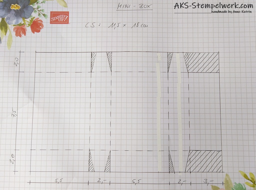 Und hier habe ich für Euch die Anleitung mit den Maßen aufgeschrieben, falls Ihr Interesse an so einer Minibox in der Größe 5,5 x 7,5 cm habt.