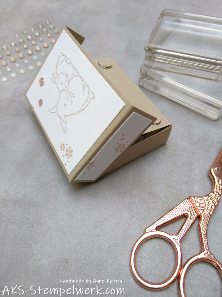Das Häschenmotiv habe ich auch für diese kleine Mini-Box verwendet, diesmal allerdings nicht coloriert.