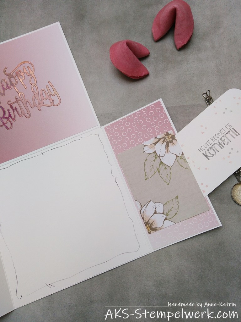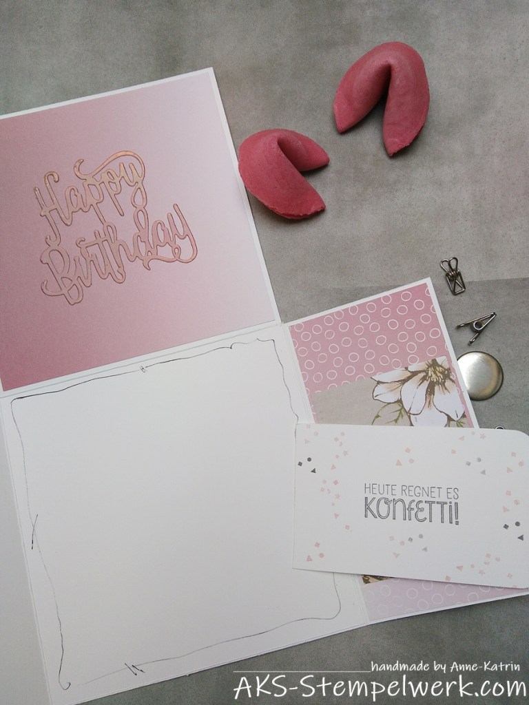 Das schöne an dieser Karte ist, dass sie wirklich viel Platz für Text bietet. Und wer nicht so viel schreiben mag, kann immer noch Sprüche aufstempeln oder Fotos einkleben…