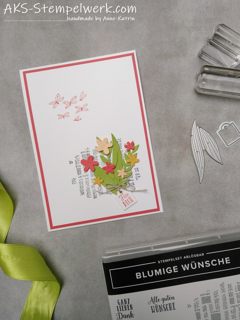 Gerade groß genug für den Gruß „Für Dich“. Auch die kleinen Blumen sind in dem Set enthalten. D.h. mit dem Produktpaket seid Ihr gut bedient und habt alles, was es für diese Karte braucht.