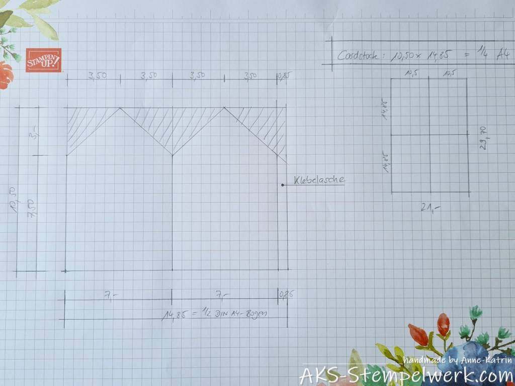 Für die Basis habe ich weißen Cardstock verwendet. Ich habe Euch eine kleine Anleitungsskizze gezeichnet… die zeige ich Euch am Ende des Beitrages.