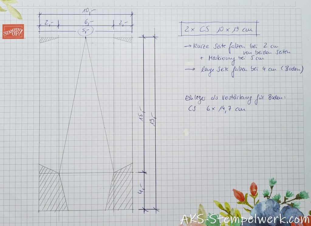 Die Grundmaße der Tasche hab ich mir bei Brigitte von Stempelfantasie abgeguckt.