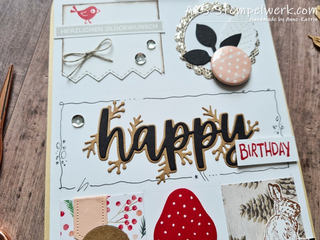 Verwendet habe ich ein buntes Sammelsurium an Material aus den aktuellen Katalogen, aber auch ein paar Schnipsel, die ich noch in meinen kleinen Vorratsdosen horte 😉