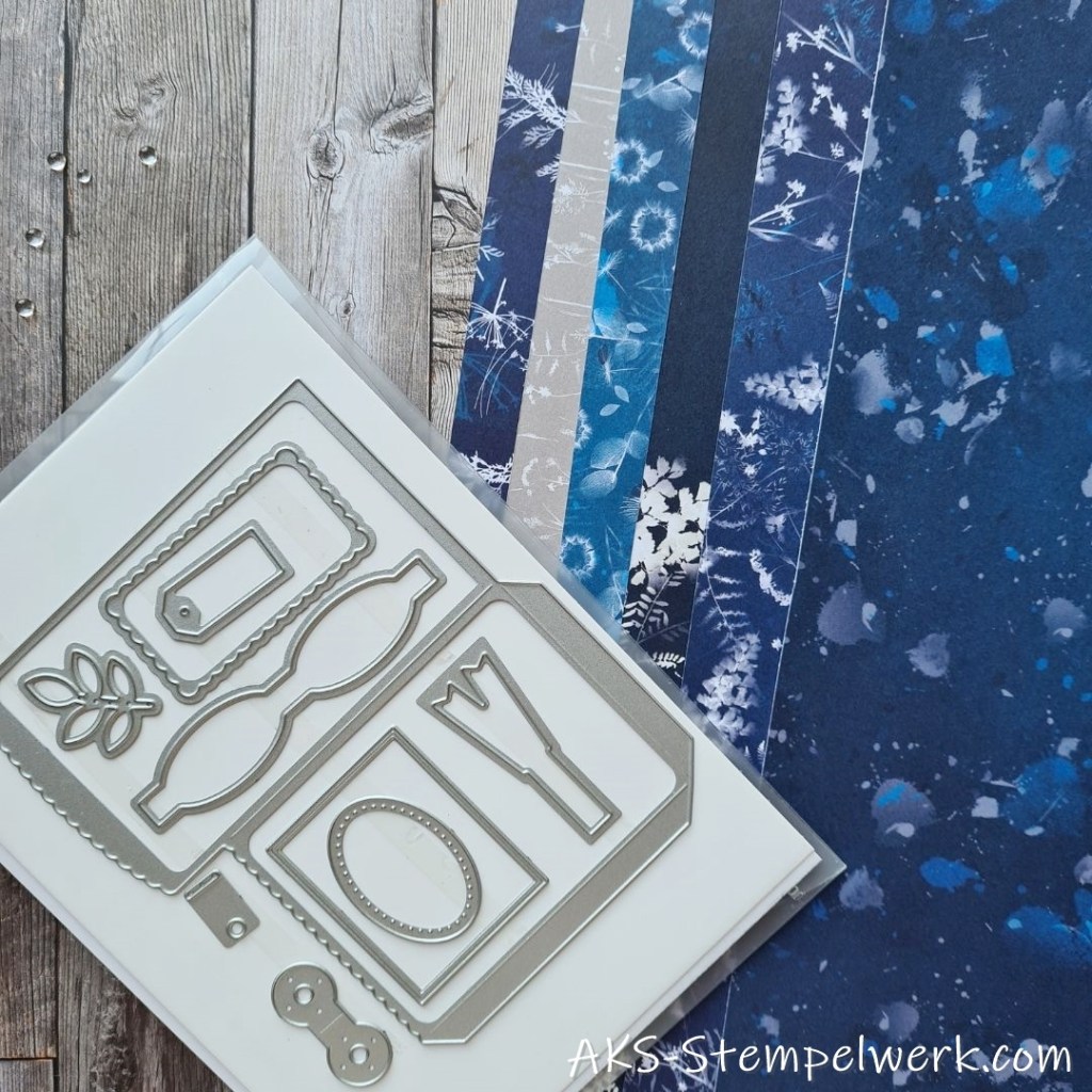 Eins meiner absoluten Lieblingsdesignerpapiere ist ja das Set „Sonnendruck“ (Hauptkatalog S. 134). Dieser tolle Druck und vor allem die Blautöne sind total meins! 😍