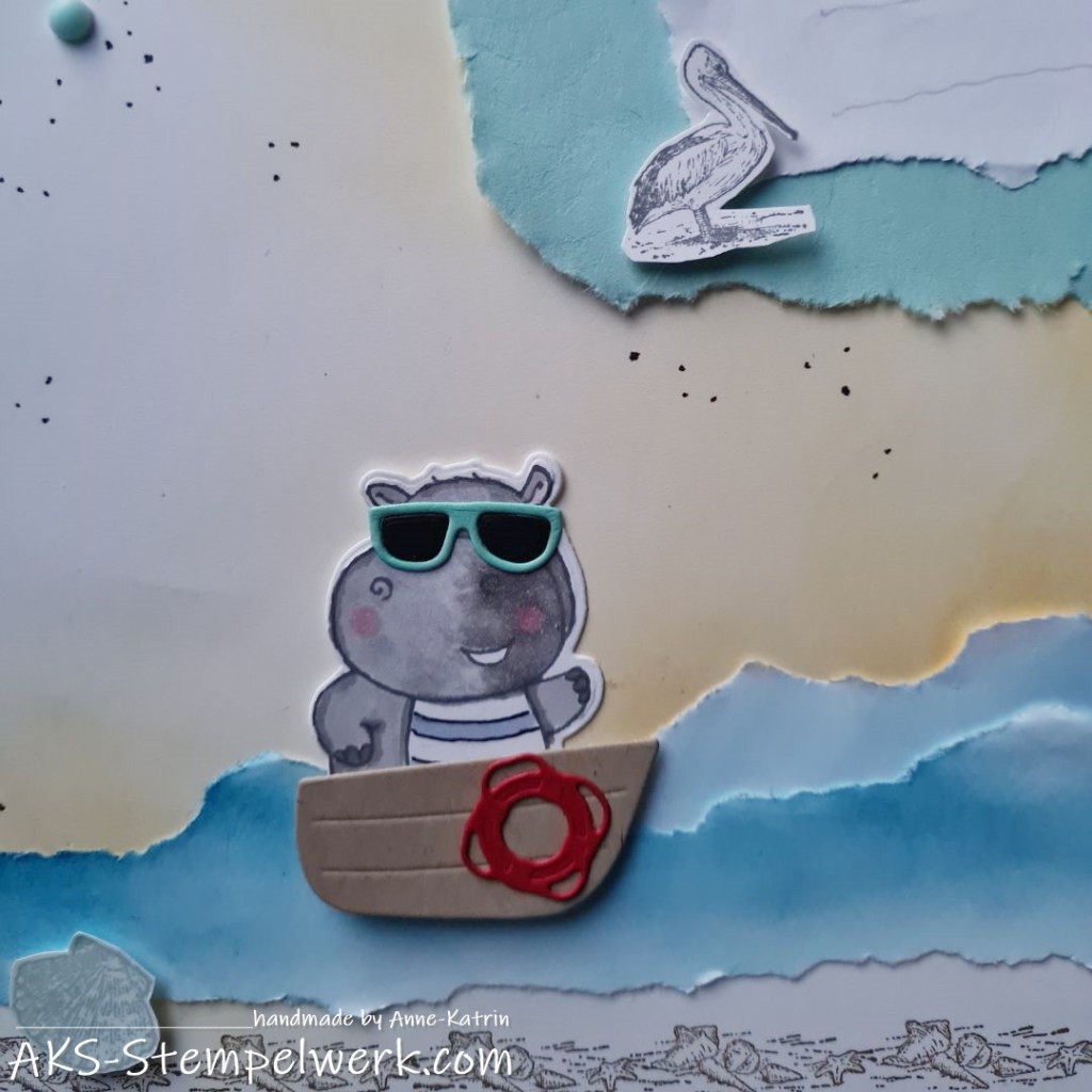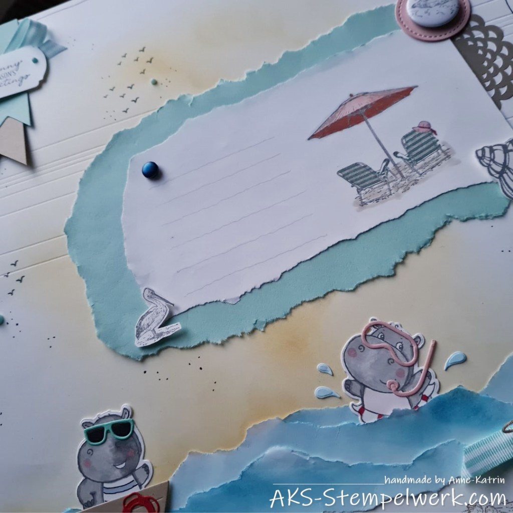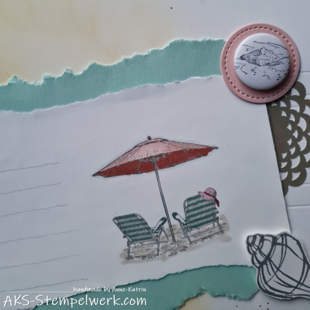 Der Spruch stammt ebenso aus dem Set, wie die Liegestühle, der Pelikan und die Muscheln, die ich am unteren Bildrand (s. 1. Bild) als Abschluss gesetzt habe.