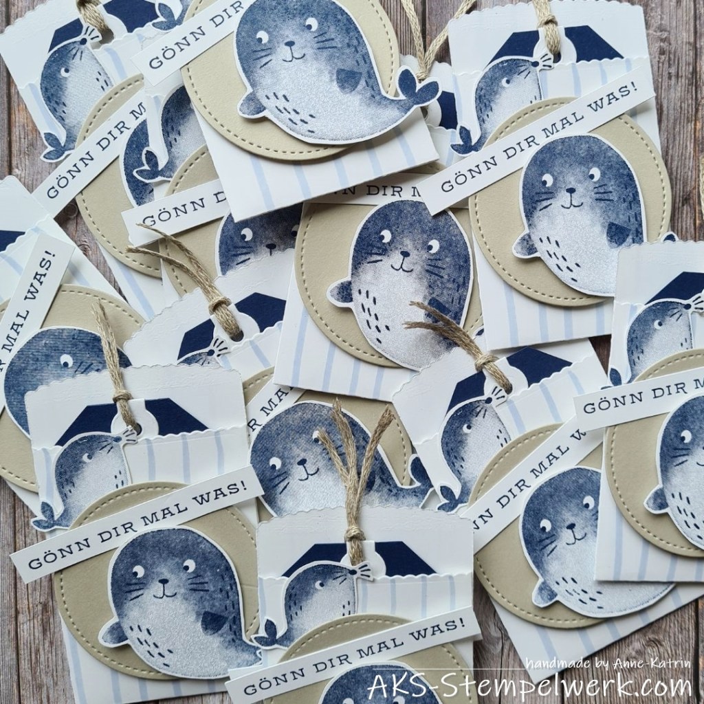 Die süßen Robben stammen aus dem neuen Stempelset „Coole Feiertage“ (Minikatalog Juli-Dezember 2022, S. 35). Die sind mir sofort ins Auge gesprungen… da konnte ich nicht widerstehen😊